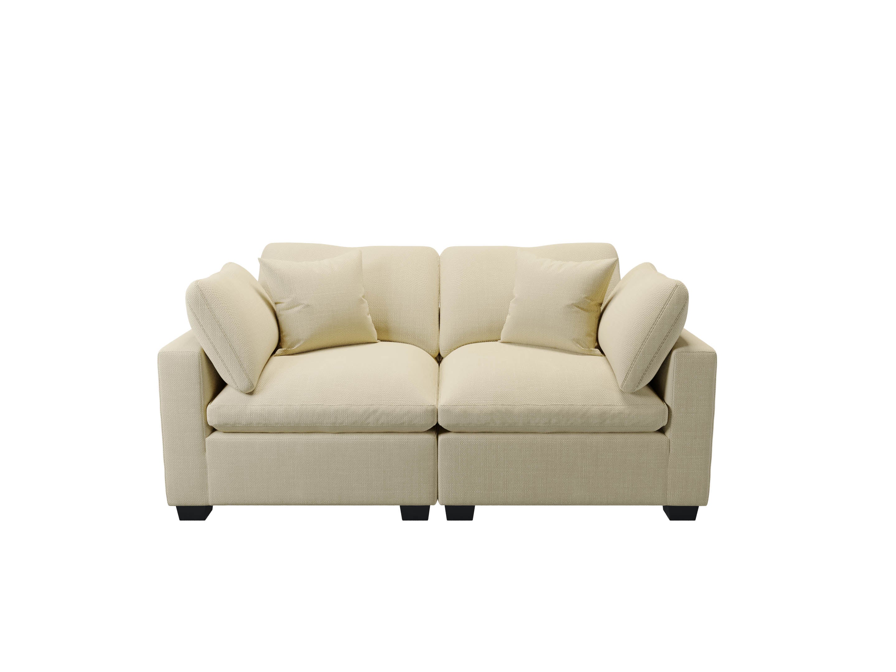 Deep, plush cushions made with a feather and fiber blend deliver that dreamy, cloud-like softness you’ll never want to leave.